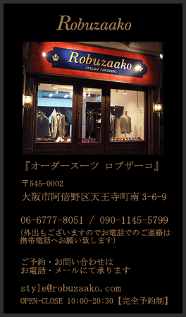 と、云いますと少しオーバーに聞こえるかも知れませんが(笑)、私たちは仕立て服を通して品格、マナーのある紳士と自己流儀のある服装(自分なりのルール=スタイルをもつ服装)の追求をテーマにしております。